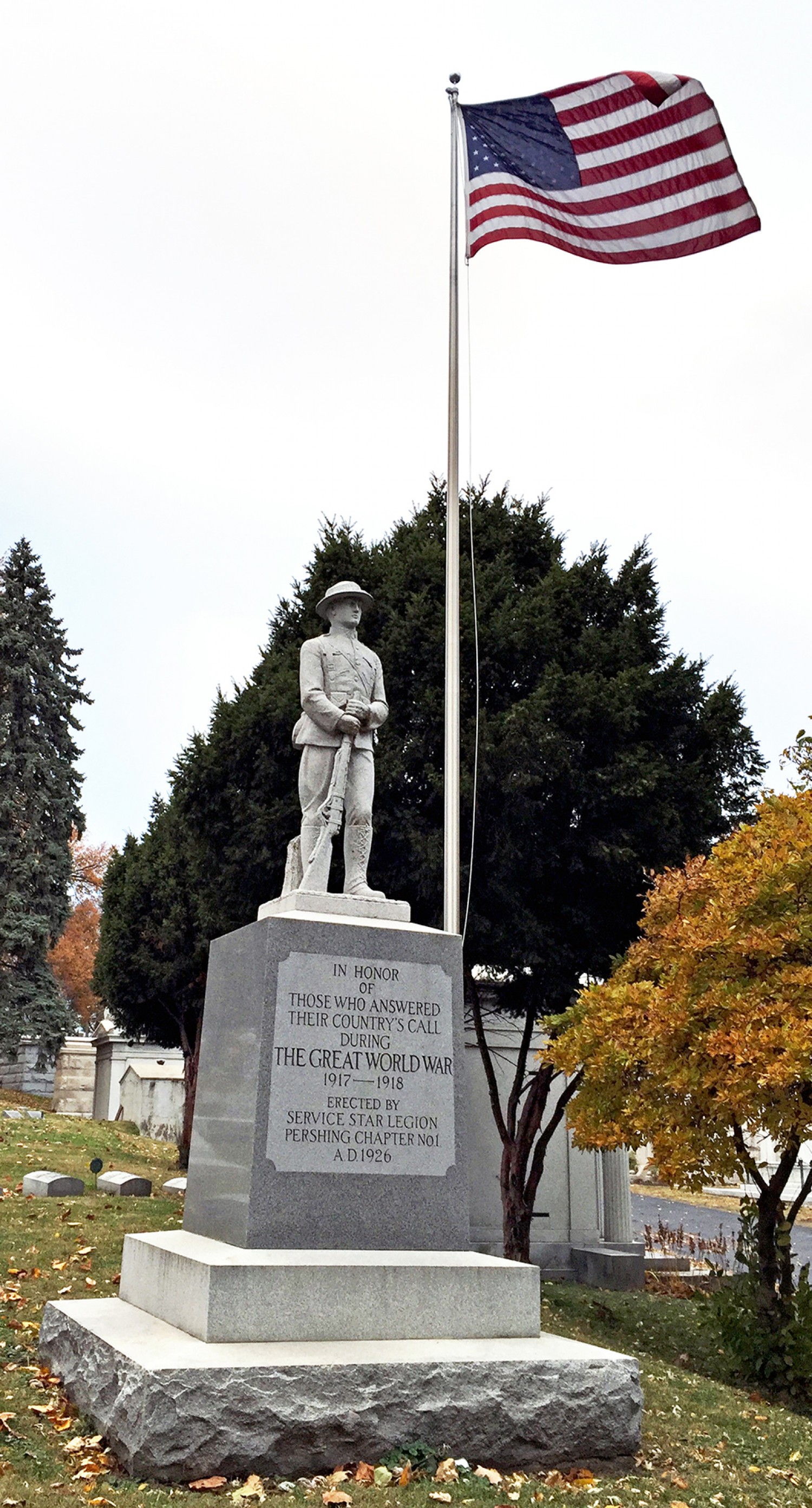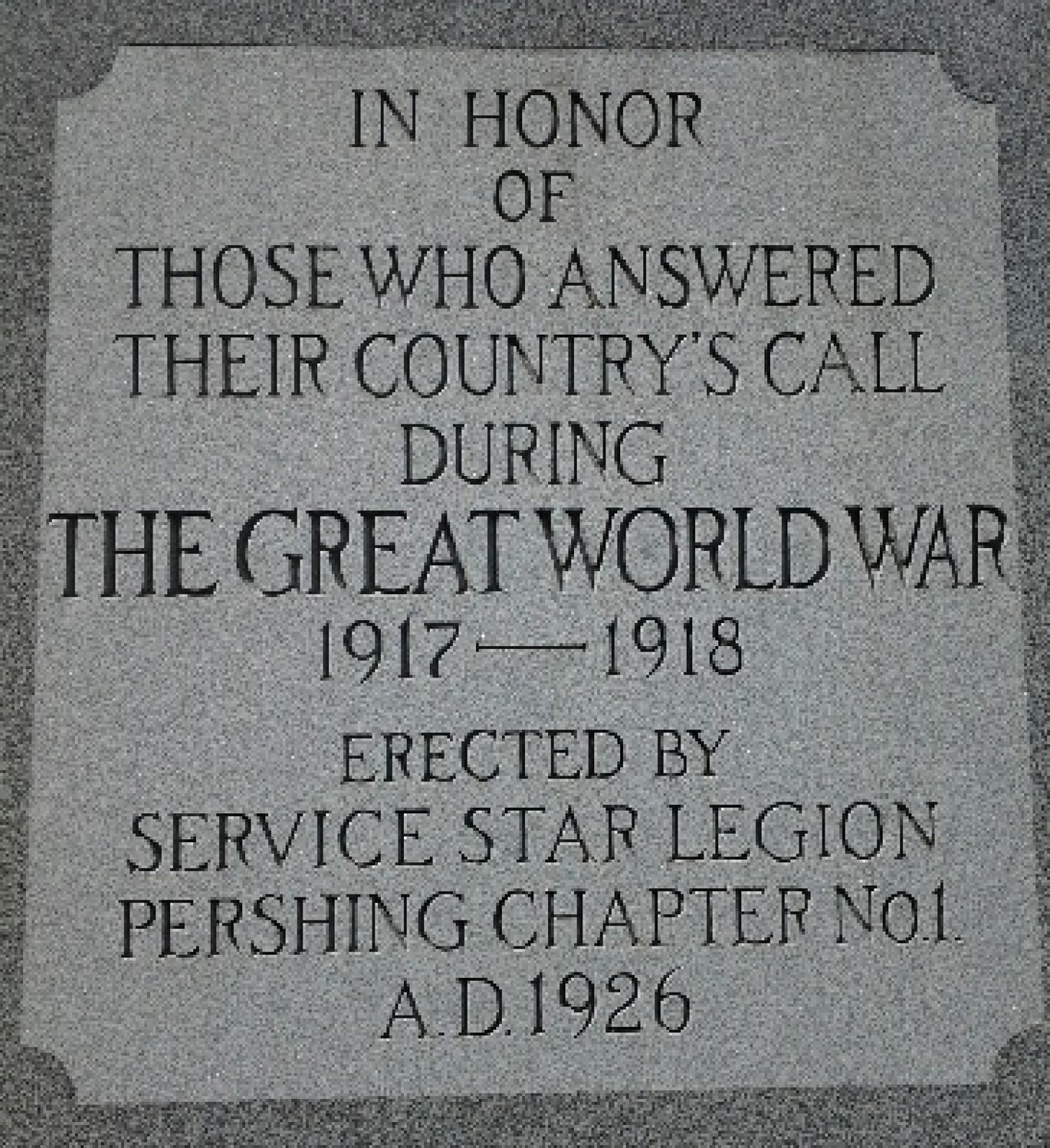 Located in the Mount Mora Cemetery, in St. Joseph, Missouri stands a Doughboy Statute dedicated to the men who served during WWI from Buchanan County. Dedicated in September of 1926, in front of a crowd of over 300, the statue was built by the Missouri Granite Company. It was commissioned by The Pershing Chapter No. 1, Service Star Legion. The project cost $3,560 and was funded via poppy sales and donations from relatives of war veterans.