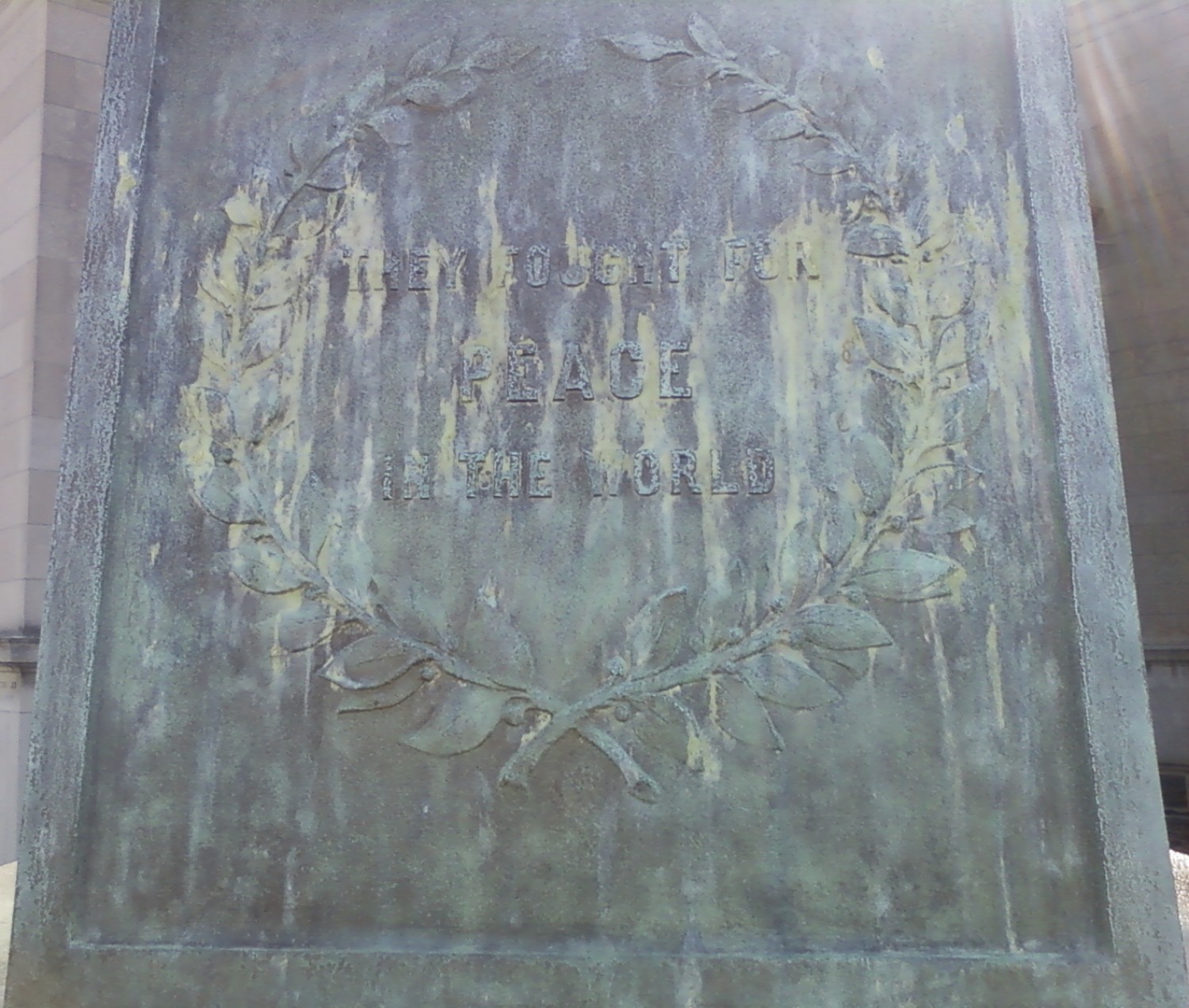 A memorial to WWI veterans once stood at the Carondelet Public Library, after it was damaged the plaques and bronze portions were removed for safe keeping. The pedistal still stands in its original position.