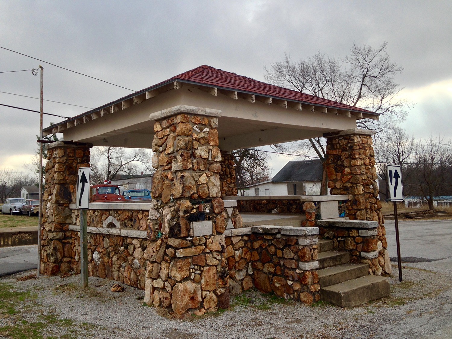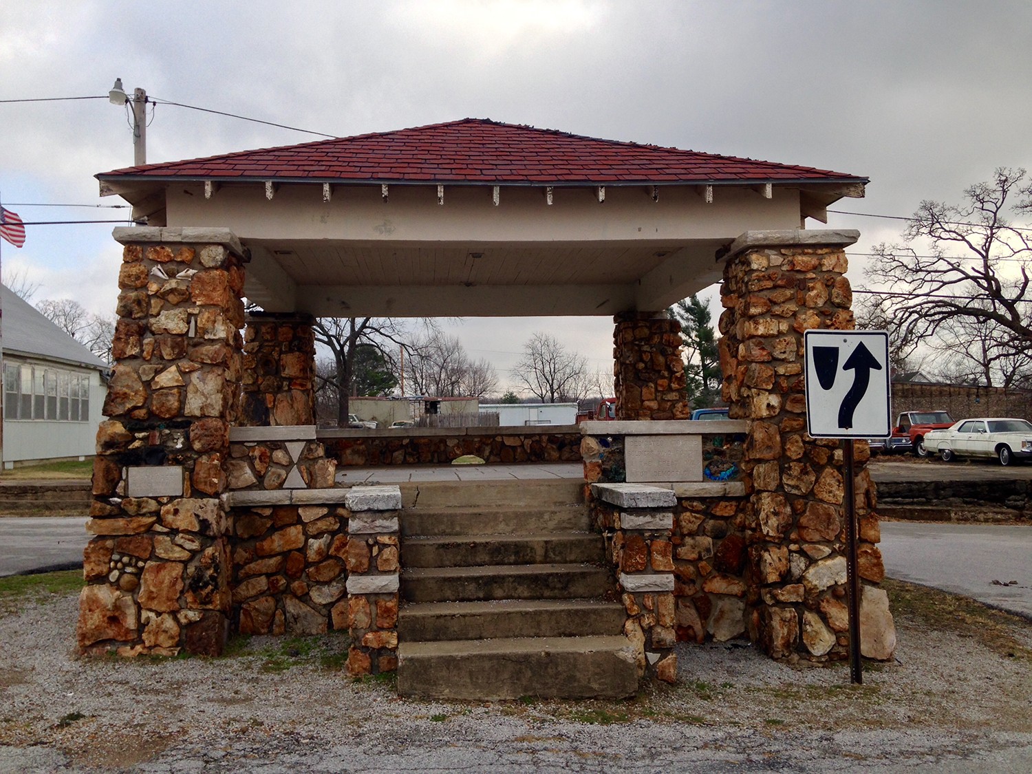 This memorial gazebo in Everton, Missouri was erected in 1921 by General Contractor E.S. Barrett of Springfield, Missouri and is dedicated to the soldiers who fought in WWI from the area. The memorial is located on the corner of Commercial and Church Streets near the post office.